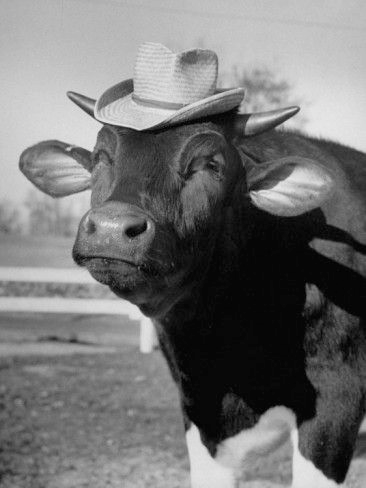 Photographer Nina Leen has an extensive series of photos of cows wearing hats