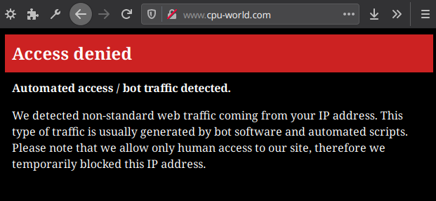 interestingly, cpu-world.com has banned me because it thinks im a botnet?